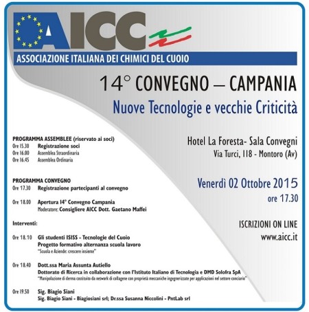 Si è tenuto a Montoro (AV) il giorno 2 ottobre 2015, l’ultimo incontro dei Chimici del Cuoio (AICC) sul tema “Nuove tecnologie e vecchie criticità” presso l’Hotel La Foresta