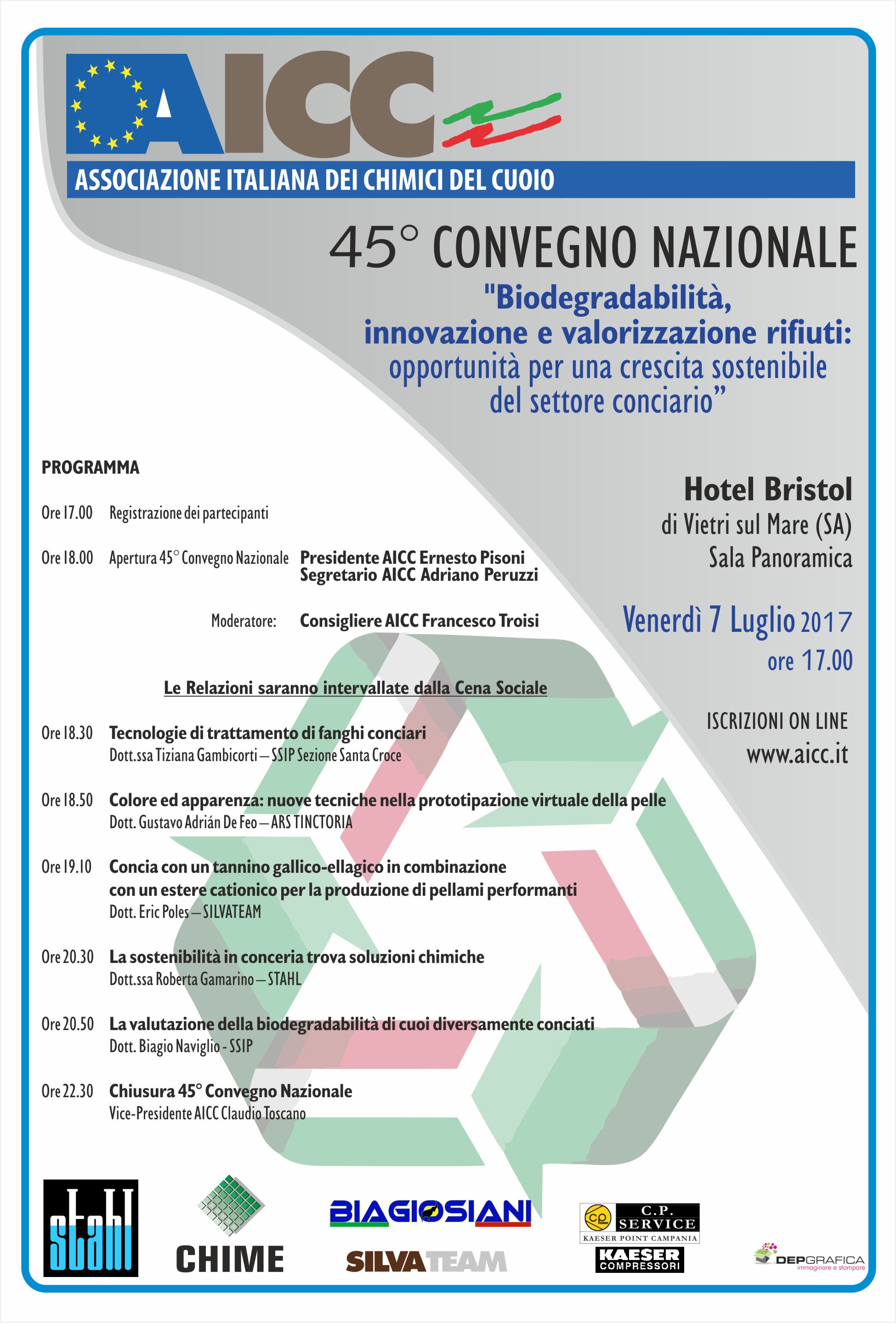 Il giorno Venerdì 7 Luglio 2017 si terrà in Campania, il 45° Convegno della “Associazione Italiana dei Chimici del Cuoio” (AICC) nazionale.