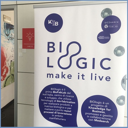 Un centro di ricerca e sviluppo che utilizza tecnologie di biological fabrication per realizzare prodotti a matrice bio e mettere a punto nuovi processi di lavorazione in ambito manifatturiero. Nasce a Cava de’ Tirreni BIOlogic, primo BioFabLab del sud Italia. Un laboratorio di bio manifattura concepito sul modello dei fab lab, ma anche un centro di ricerca innovativo promosso e gestito da Knowledge for Business, società specializzata nella promozione di processi innovativi e nel trasferimento tecnologico, in collaborazione con Medaarch, società specializzata nelle tecnologie di digital fabrication, la cui compagine ha costituito il primo fab lab dell’Italia Meridionale, il Mediterranean FabLab, e un gruppo di esperti delle tecnologie di biological fabrication.