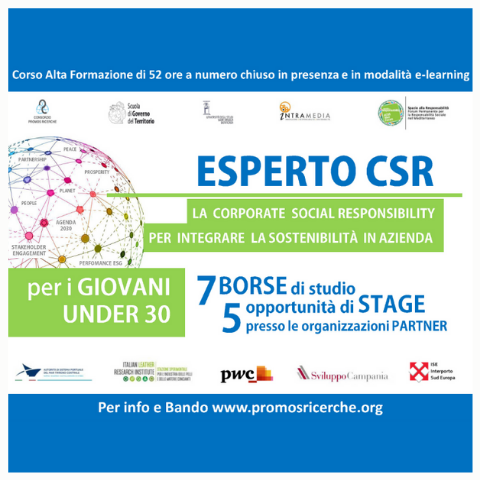 CLICCA QUI per conoscere le modalità di partecipazione ed ulteriori info sul Corso di Alta formazione Esperto CSR