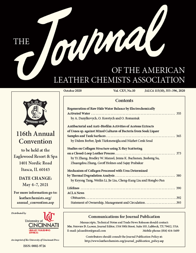 Rivista tecnico/scientifica: Journal of American Leather Chemists Association – JALCA