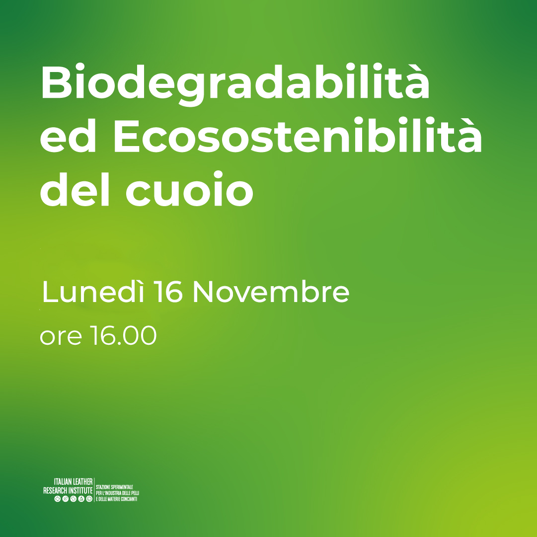 La SSIP comunica che il webinar “Biodegradabilità ed eco-sostenibilità del cuoio”, previsto per il 30 ottobre – posticipato per motivi di salute del Relatore – si svolgerà LUNEDÌ 16 NOVEMBRE.
