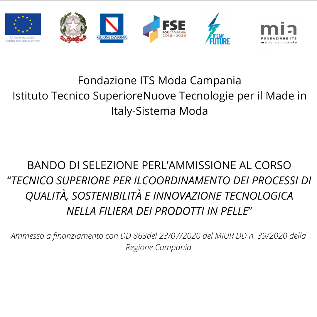 Prorogato il Bando per il nuovo Corso ITS per “TECNICO SUPERIORE PER IL COORDINAMENTO DEI PROCESSI DI QUALITÀ, SOSTENIBILITÀ E INNOVAZIONE TECNOLOGICA NELLA FILIERA DEI PRODOTTI IN PELLE – Annualità 2020-2022