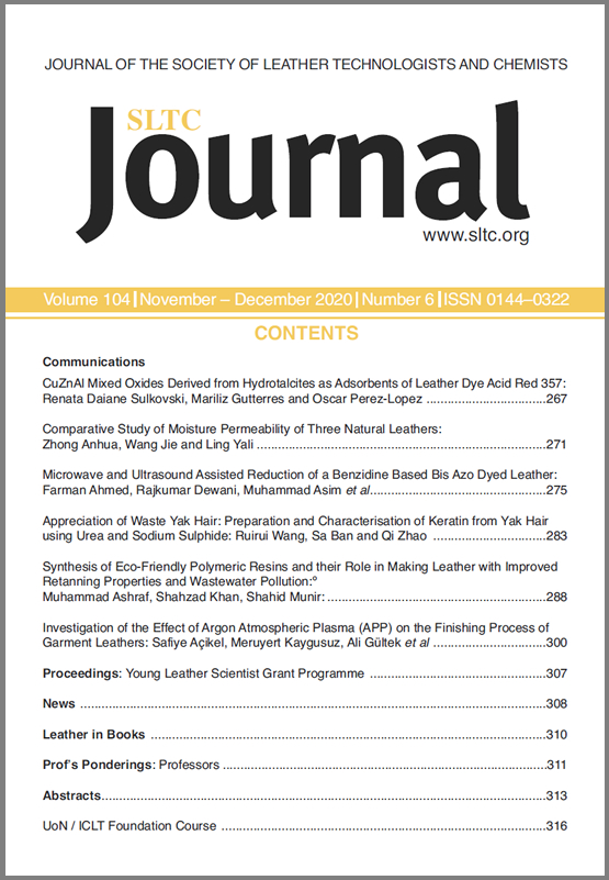 Questa pubblicazione viene edita dall’associazione britannica “Society of Leather Technologists and Chemists”, le cui origini risalgono al 1897, quando si tenne a Londra