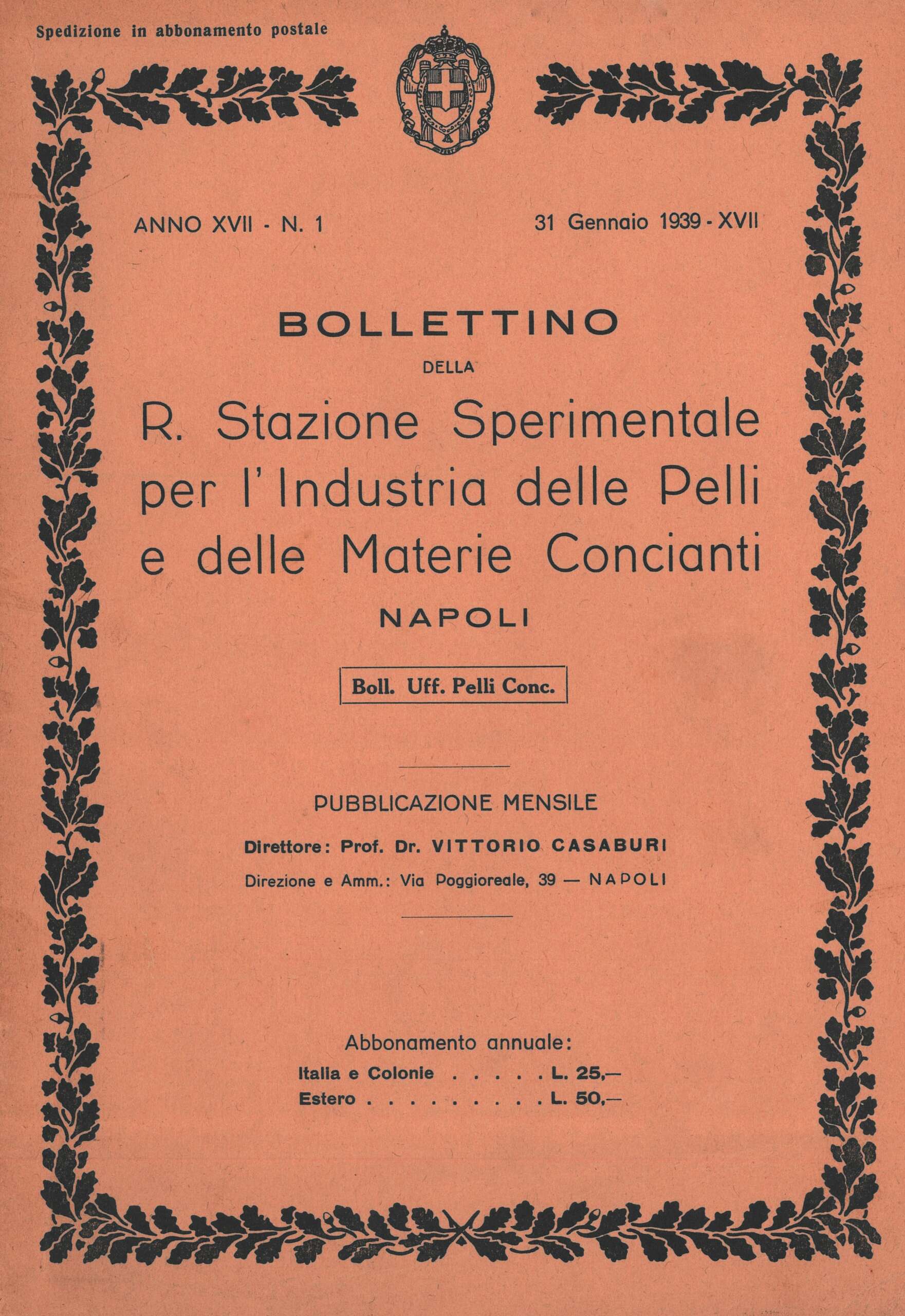 Contents: Cuoio Pelli Materie Concianti, Vol. XVII, n. 1, 31 gennaio 1939