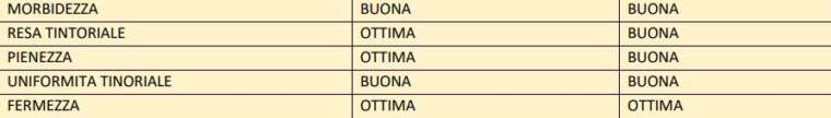 Tabella riassuntiva di alcune proprietà su pelle, fiore in crust wet white