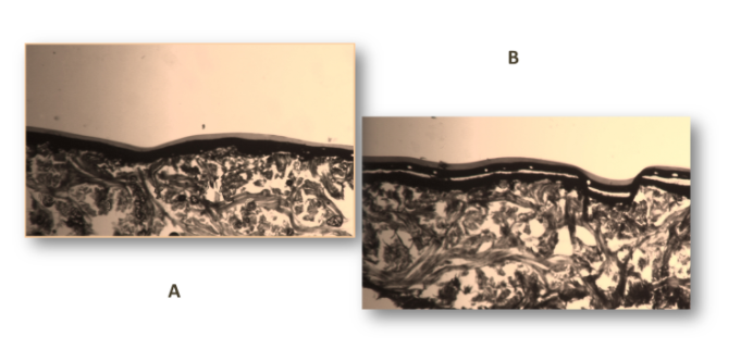 Fig.1: Analisi comparativa tra due campioni in assenza (A) e in presenza (B) di difetti di rifinizione