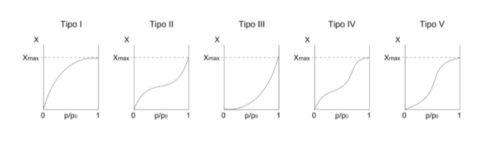 - L’isoterma del secondo tipo è detta isoterma BET e indica la formazione di un numero indefinito di strati, dopo la formazione del monostrato che si dovrebbe avere circa nel flesso.