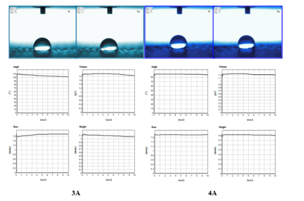 Tale tecnica, che consente di monitorare le variazioni dell’angolo di contatto, oltre che di caratteristiche dimensionali e geometriche della goccia nel tempo, risulta inoltre particolarmente idonea per la valutazione dell’efficacia di trattamenti innovativi per il conferimento si specifiche proprietà dei cuoi come, ad esempio, idrofobicità, idrorepellenza, proprietà antimacchia, ecc., anche attraverso processi di film deposition plasma o laser assistiti, oltre che per la valutazione del loro impatto sulle prestazioni tecniche e merceologiche della superficie, nell’ottica di garantire, nel contempo, la conservazione delle caratteristiche di qualità e comfort del materiale.