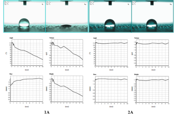 Tale tecnica, che consente di monitorare le variazioni dell’angolo di contatto, oltre che di caratteristiche dimensionali e geometriche della goccia nel tempo, risulta inoltre particolarmente idonea per la valutazione dell’efficacia di trattamenti innovativi per il conferimento si specifiche proprietà dei cuoi come, ad esempio, idrofobicità, idrorepellenza, proprietà antimacchia, ecc., anche attraverso processi di film deposition plasma o laser assistiti, oltre che per la valutazione del loro impatto sulle prestazioni tecniche e merceologiche della superficie, nell’ottica di garantire, nel contempo, la conservazione delle caratteristiche di qualità e comfort del materiale.