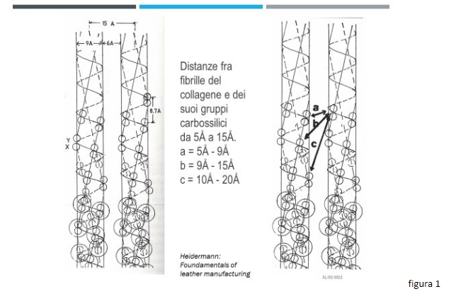 Si può notare nella figura 1 i diversi siti reticolabili delle catene in posizioni molto differenti. Tanto più si riesce a raggiungere posizioni lontane e diverse, senza causarne una contrazione, maggiore sarà l’effetto stabilizzante a parità di offerta di sostanza conciante.