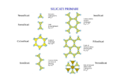 I minerali sono composti in prevalenza da silicati e non silicati. Quelli più abbondanti in natura sono i silicati con una presenza del 92% e sono classificati in: nesosilicati, sorosilicati, ciclosilicati, inosilicati, fillosilicati e tectosilicati.