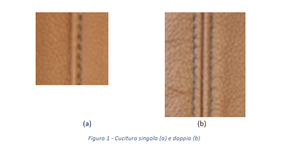 Sono stati analizzati campioni di pelle di tre diversi colori (bianco, marrone e marrone scuro, Figura 2) utilizzando due diversi assemblaggi: campioni compositi con cucitura singola (Figura 1) al centro e con doppia cucitura. I campioni compositi sono stati forniti già pronti per il test; il laboratorio non ha eseguito alcuna cucitura.