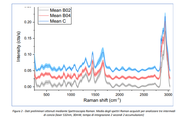 know-how ed expertise in un settore di punta come la Spettroscopia Raman, una tecnica per analisi biochimiche e la classificazione “senza contatto” di campioni solidi o liquidi. La dotazione strumentale di ultima generazione del laboratorio di spettroscopia del CNOS consente di eseguire analisi Raman, Surface Enhanced Raman Spectroscopy e Tip Enhanced Raman Spectroscopy, per ottenere informazioni puntuali e mappe chimico-fisiche dei campioni. Nell’ambito dell’industria conciaria, il CeRICT propone l’utilizzo della spettroscopia Raman come tecnologia abilitante per l’analisi, il controllo qualità di processo e di prodotto, e la classificazione dei prodotti conciari. Studi preliminari, condotti in collaborazione con la Stazione Sperimentale per l’Industria delle Pelli e delle Materie concianti, hanno dimostrato che è possibile caratterizzare e distinguere le variazioni tra diversi campioni in esame, ovvero la classificazione di alcuni intermedi di concia (e relativa individuazione degli effetti di singoli step di lavorazione) e l’analisi di componenti di prodotti costituiti da prodotti sintetici. Il successo di tale studio può essere ulteriormente potenziato grazie all’applicazione di differenti approcci di intelligenza artificiale, sviluppati e utilizzati in ambito medicale dal CeRICT, che consentono una visualizzazione grafica e una differenziazione immediata dei campioni rilevando differenze e identificando i cambiamenti spettrali (fingerprint). Questa capacità di delineare una fine granularità dei fenotipi abilita uno studio pilota unico nel suo genere finalizzato alla creazione di un innovativo database con dati Raman ottenuti da materie prime del settore e da frammenti di cuoio sottoposti a differenti lavorazioni, creando nuovi checkpoints per i controlli di qualità di processo, dei semilavorati e dei prodotti finiti. Il CeRICT, inoltre, può mettere a disposizione del comparto conciario la sua pluriennale expertise nello sviluppo di sistemi di monitoraggio avanzato, candidandosi a partner tecnologico ideale per una rivoluzione tecnologica del settore (“Comparto Conciario 4.0”).