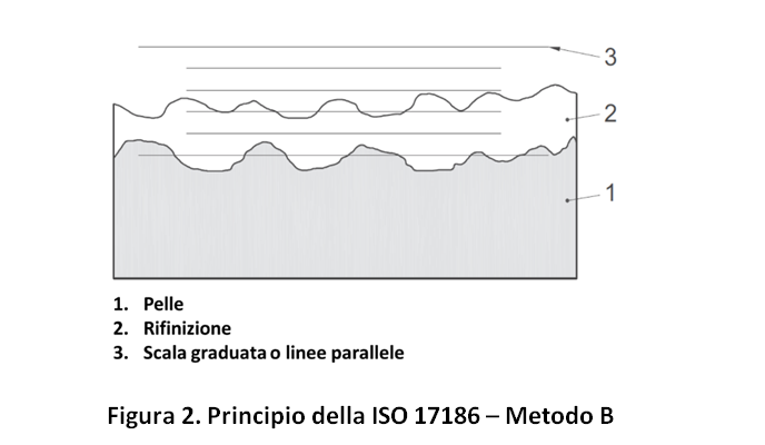 La misura dello Spessore della Rifinizione, per tramite di tecniche di microscopia ottica ed elettronica, secondo il metodo ISO 17186, risulta quindi fondamentale per verificare se pellami rifiniti possano essere definiti come «pelle», o piuttosto debbano essere etichettati come «pelle rivestita», a fronte di un valore limite di rifinizione pari a 0,15 mm. Anche tale misura si basa, tuttavia, sulla capacità, non solo strumentale, di distinguere correttamente la fibra cuoiosa dal relativo strato di rifinizione.