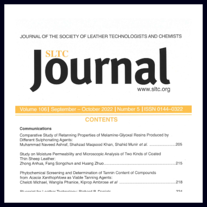Questa pubblicazione viene edita dall’associazione britannica “Society of Leather Technologists and Chemists”, le cui origini risalgono al 1897, quando si tenne a Londra