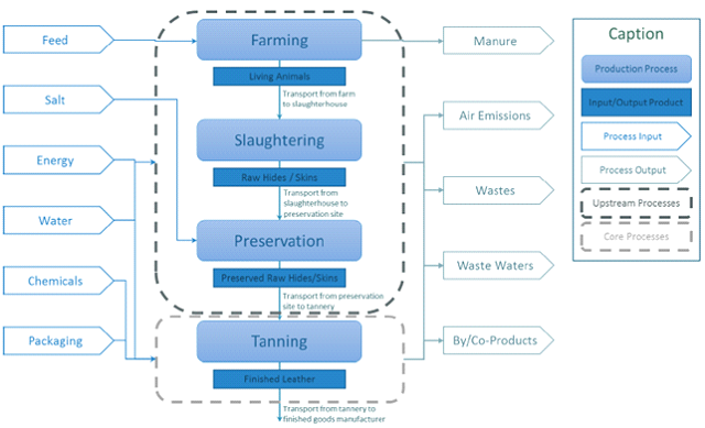 In questo frangente il PEF (Product Environmental Footprint) ha l’obbiettivo di quantificare l’impronta ambientale di un prodotto in funzione della sua destinazione d’uso, basato sul LCA ed in conformità con Product Environmental Footprint Category Rules (es: PEFCR Leather, 2018).