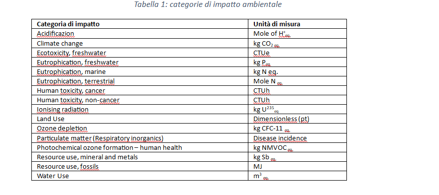 Le categorie di impatto ambientale più rilevanti sono quelle che cumulativamente contribuiscono ad almeno l’80% dell’impatto ambientale totale (escluse le categorie di impatto relative alla tossicità), partendo dal contributo maggiore fino a quello minore.
