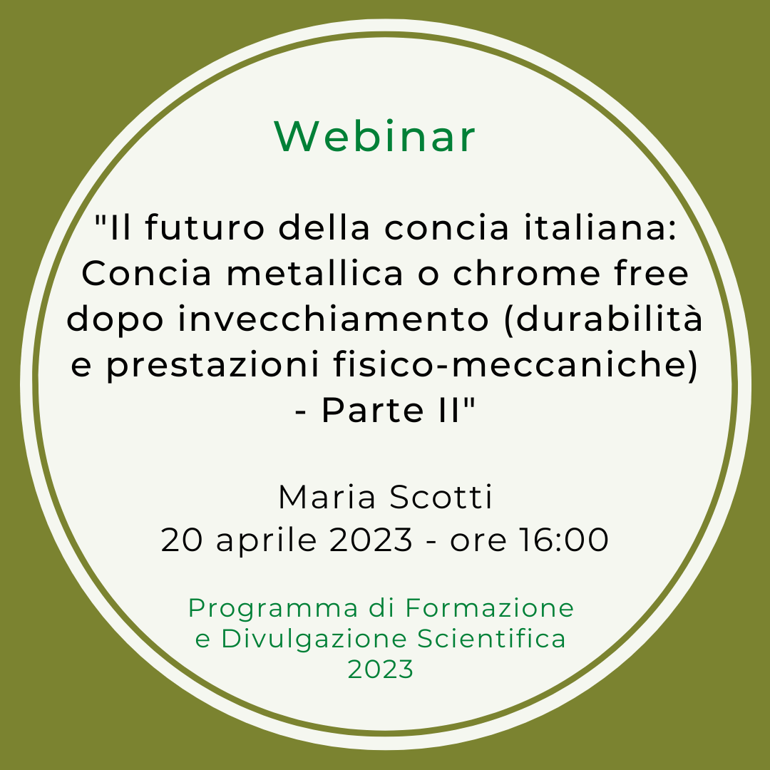 Webinar 20.04.2023 – “Il futuro della concia italiana: Concia metallica o chrome free dopo invecchiamento” – Report