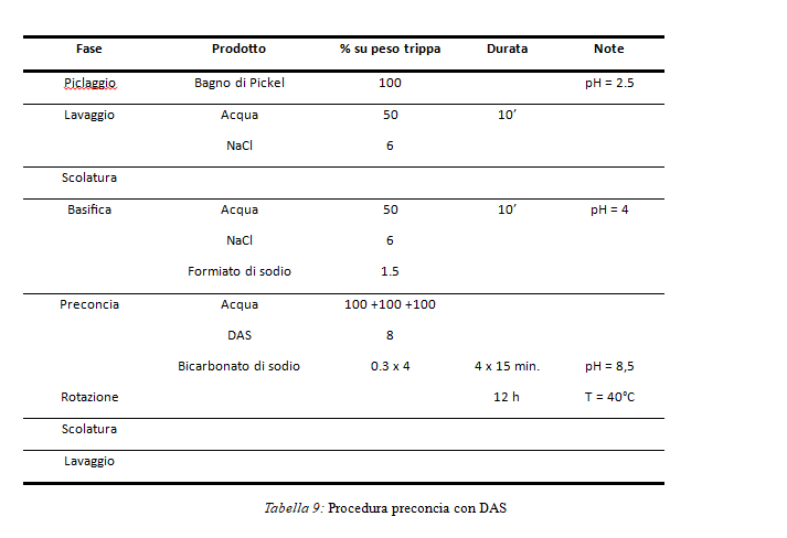 La procedura utilizzata per preconciare la pelle con DAS è riportata nella Tabella 9.