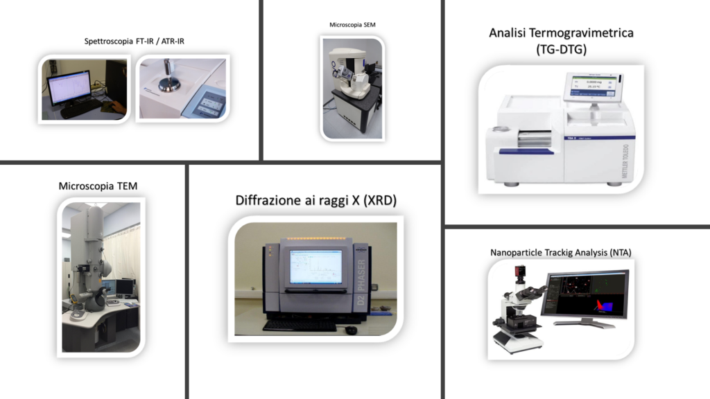 Per avere conoscenze più approfondite sulle caratteristiche strutturali e dimensioni delle NPs, può tuttavia risultare necessario ricorrere ad ulteriori tecniche, con particolare riferimento alla diffrattometria dei raggi X (XRD), che misura gli sforzi residui con la diffrazione dei raggi X in materiali mono e policristallini ed alla tecnica di caratterizzazione NTA (Nanoparticles Tracking Analysis), che utilizza le proprietà della diffusione della luce e del moto Browniano per ottenere una distribuzione granulometrica dei campioni dispersi in una
