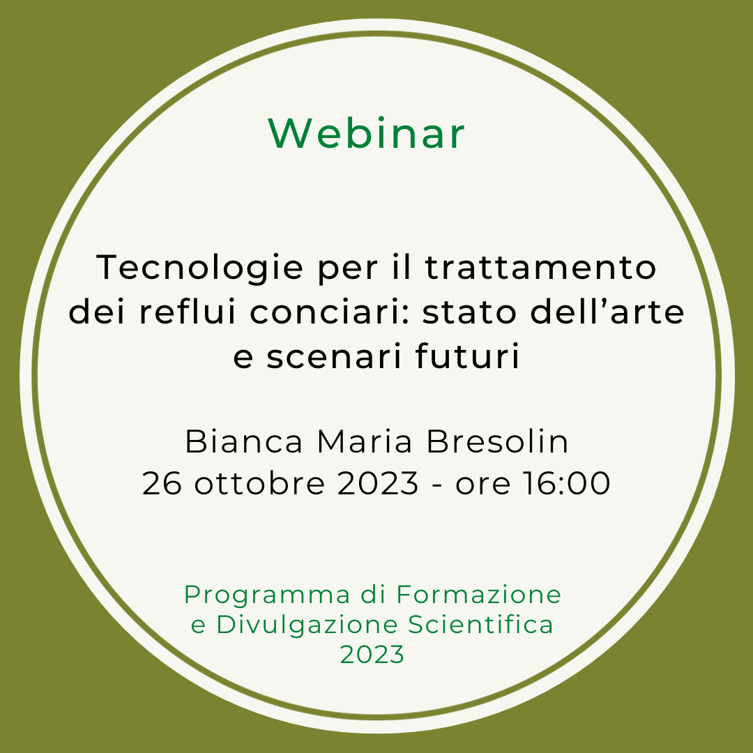 Webinar 26.10.2023 – “Tecnologie per il trattamento dei reflui conciari: stato dell’arte e scenari futuri”