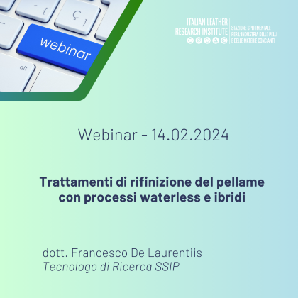 Webinar 14.02.2024 – “Trattamenti di rifinizione del pellame con processi waterless e ibridi”
