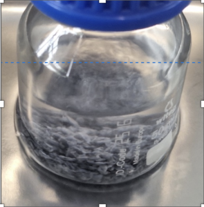 Al termine dell’estrazione, raffreddato il tutto, il solvente viene filtrato per separare i residui solidi e concentrato mediante blando riscaldamento sottovuoto con un evaporatore rotante. I trigliceridi contenuti nella fase organica apolare vengono sottoposti alla reazione di transesterificazione che ha lo scopo di liberare gli acidi grassi costituenti e convertirli in esteri metilici per renderli più apolari rispetto alla forma acida, facilitandone così la successiva separazione e caratterizzazione.