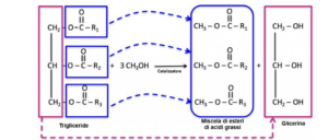 Schema della reazione di transesterificazione