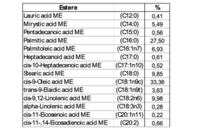Composizione degli esteri metilici degli acidi grassi ottenuti da sostanza grassa estratta da cuoio di coccodrillo