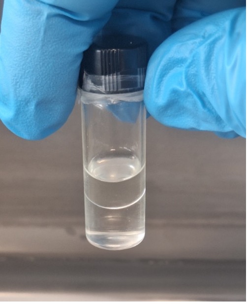 | Reazione di transesterificazione in atto; i trigliceridi, che sono ancora solo parzialmente decomposti, creano microemulsioni in entrambe le fasi. | Reazione terminata. Il glicerolo è solubilitzzato nella parte idroalcolica mente gli esteri e gli insaponificabili sono nella fase organica. L’aggiunta di sali nella fase acquosa favorisce la rottura delle eventuali emulsioni.