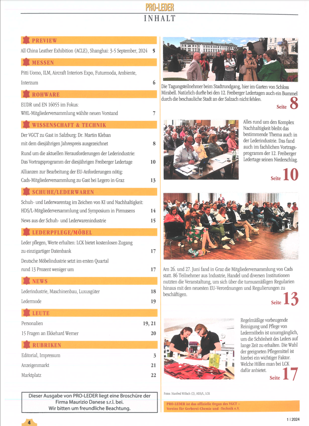 Questo magazine viene edito a cadenza bimestrale in 6 numeri/anno, da “Profashional Media GmbH”. Si tratta di una pubblicazione tedesca in cui vengono riportati gli eventi più importanti del mondo e del commercio della pelle a livello internazionale, nonchè gli ultimi sviluppi nelle aziende conciarie e negli istituti di ricerca scientifica di settore.