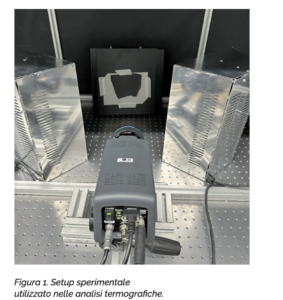 Per tutte le tipologie di difetti, la modalità Pulsed si è rilevata la tecnica più promettente per l’ispezione termografica della pelle conciata. Questa analisi è stata condotta utilizzando due riscaldatori ad infrarossi (potenza nominale di 2 kW ciascuno) capaci di fornire un riscaldamento controllato e uniforme su un’ampia superficie di pelle in esame. I riscaldatori sono stati posizionati equidistanti dai campioni da testare, a una distanza di circa 50 cm e con un’inclinazione di circa 45. Questa configurazione è stata necessaria per ridurre l’interferenza delle sorgenti di calore nella misurazione dell’emissione termica del campione.