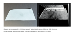 Il distacco della rifinizione della pelle è un tipico difetto che generalmente non è visibile ad occhio nudo. Questo difetto provoca una discontinuità nella pelle lungo il suo spessore, influenzando in questo modo la trasmissione del calore. La mappa Rª ottenuta dal campione di pelle soggetto ad un distacco della rifinizione della pelle mostra delle disomogeneità legate a gradienti della velocità di raffreddamento.