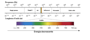 È da notare come la radiazione ricadente nell’intervallo della luce visibile, cioè quella responsabile della colorazione della materia, abbia una energia maggiore rispetto a quella della regione dell’infrarosso. Essa, però, è più soggetta a fenomeni di riflessione e di scattering da parte dei gas atmosferici e delle particelle di polvere rispetto agli infrarossi.