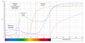La spettrofotometria di riflettanza è la tecnica analitica che permette di misurare l’intensità di radiazione riflessa per ogni lunghezza d’onda della luce visibile e in piccoli intervalli di lunghezze d’onda ad essa contigui nel vicino infrarosso, fino a lunghezze d’onda di circa 1000/1100 nm.