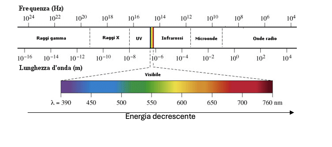 È da notare come la radiazione ricadente nell’intervallo della luce visibile, cioè quella responsabile della colorazione della materia, abbia una energia maggiore rispetto a quella della regione dell’infrarosso. Essa, però, è più soggetta a fenomeni di riflessione e di scattering da parte dei gas atmosferici e delle particelle di polvere rispetto agli infrarossi.