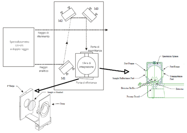Per ottenere risultati standardizzati e ripetibili le misure di riflettanza vengono effettuate con un angolo di incidenza di 8°, scelto come compromesso tra l’osservazione di riflessione diffusa e la riduzione di riflessi speculari indesiderati, che potrebbero influenzare la misurazione.