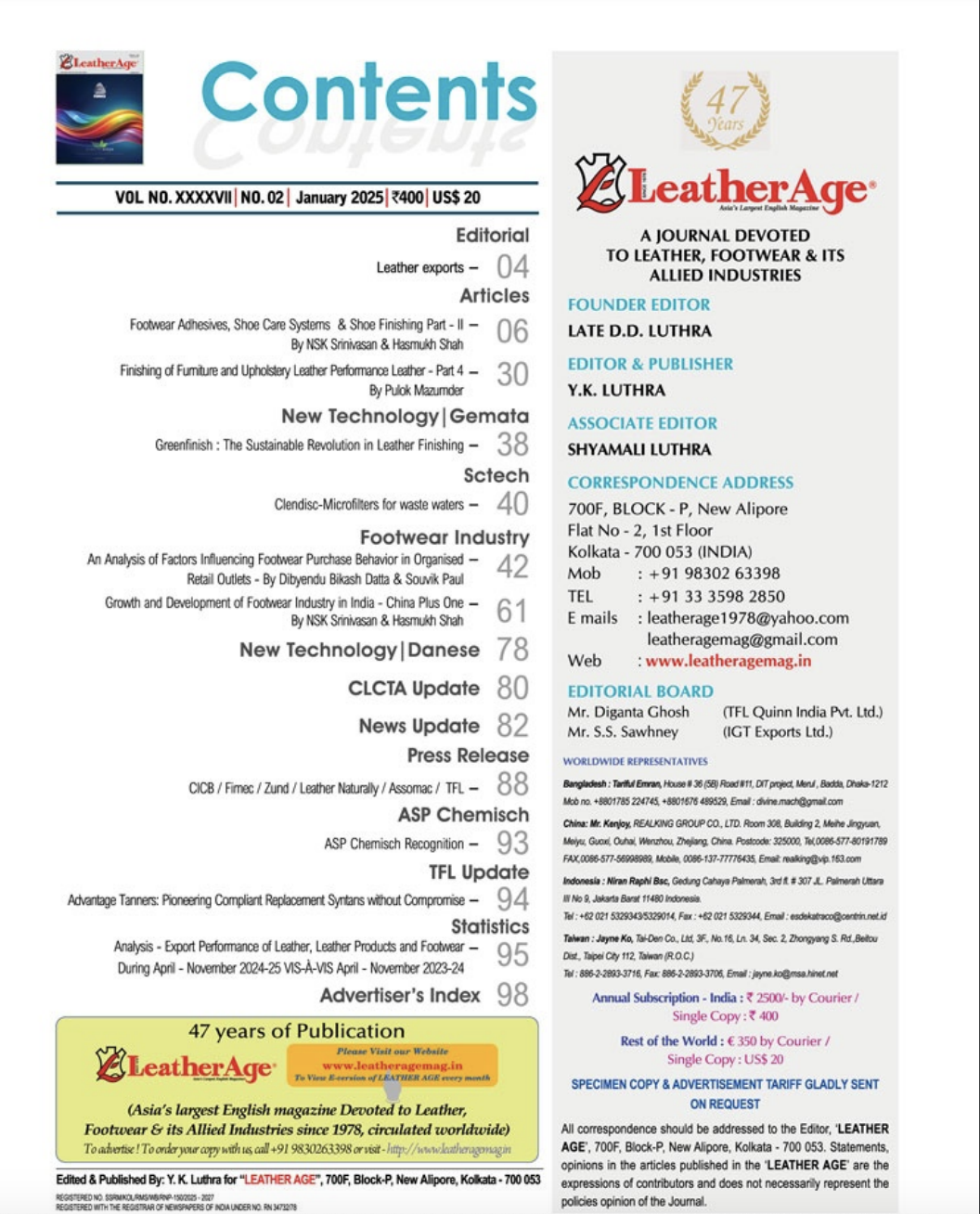 Attualmente è una delle riviste a maggior diffusione anche in occasione delle fiere, è media partner di IULTCS e del World Leather Congress, con collaborazioni con le più importanti associazioni indiane e il Central Leather Research Institute.