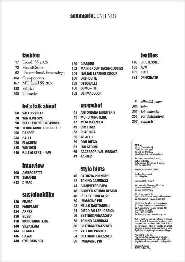 Pubblicazione italiana indirizzata ai fabbricanti, designer e studi di design di calzature e pelletteria.