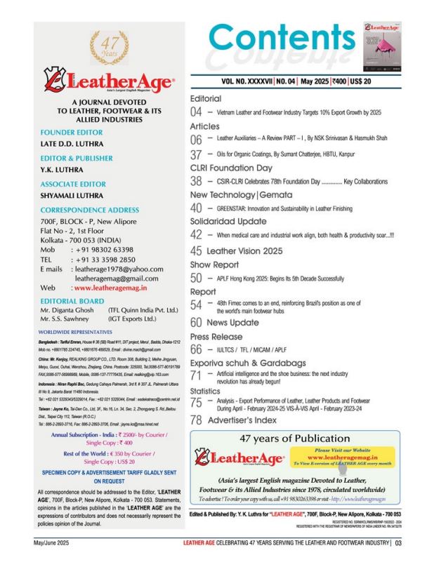 Attualmente è una delle riviste a maggior diffusione anche in occasione delle fiere, è media partner di IULTCS e del World Leather Congress, con collaborazioni con le più importanti associazioni indiane e il Central Leather Research Institute.