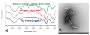 dell’industria tessile, ottimizzano l’utilizzo dei materiali e promuovono iniziative di sostenibilità. Nanocellulosa (NC) derivata da biomassa e tessuti. La nanocellulosa (NC) è un materiale promettente per la lavorazione di pelli e può essere ricavata da varie fonti, tra cui rifiuti alimentari e agricoli ricchi di lignina, emicellulosa e cellulosa (Phanthong, 2018). Inoltre, è possibile ottenerla a partire da tessuti a base di cotone attraverso trattamenti chimici con