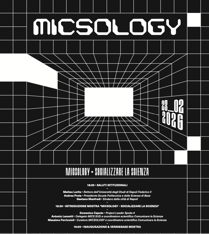 Il Roadshow MICS SUD dedicherà due giornate a 𝗶𝗻𝗻𝗼𝘃𝗮𝘇𝗶𝗼𝗻𝗲, 𝗿𝗶𝗰𝗲𝗿𝗰𝗮 𝗲 𝘀𝘃𝗶𝗹𝘂𝗽𝗽𝗼 𝗱𝗲𝗹 𝗠𝗮𝗱𝗲 𝗶𝗻 𝗜𝘁𝗮𝗹𝘆 𝗻𝗲𝗹 𝗠𝗲𝘇𝘇𝗼𝗴𝗶𝗼𝗿𝗻𝗼, affiancate dall’inaugurazione della mostra “𝗠𝗜𝗖𝗦𝗢𝗟𝗢𝗚𝗬 – 𝗦𝗼𝗰𝗶𝗮𝗹𝗶𝘇𝘇𝗮𝗿𝗲 𝗹𝗮 𝗦𝗰𝗶𝗲𝗻𝘇𝗮”, che sarà disponibile fino al 27 febbraio.