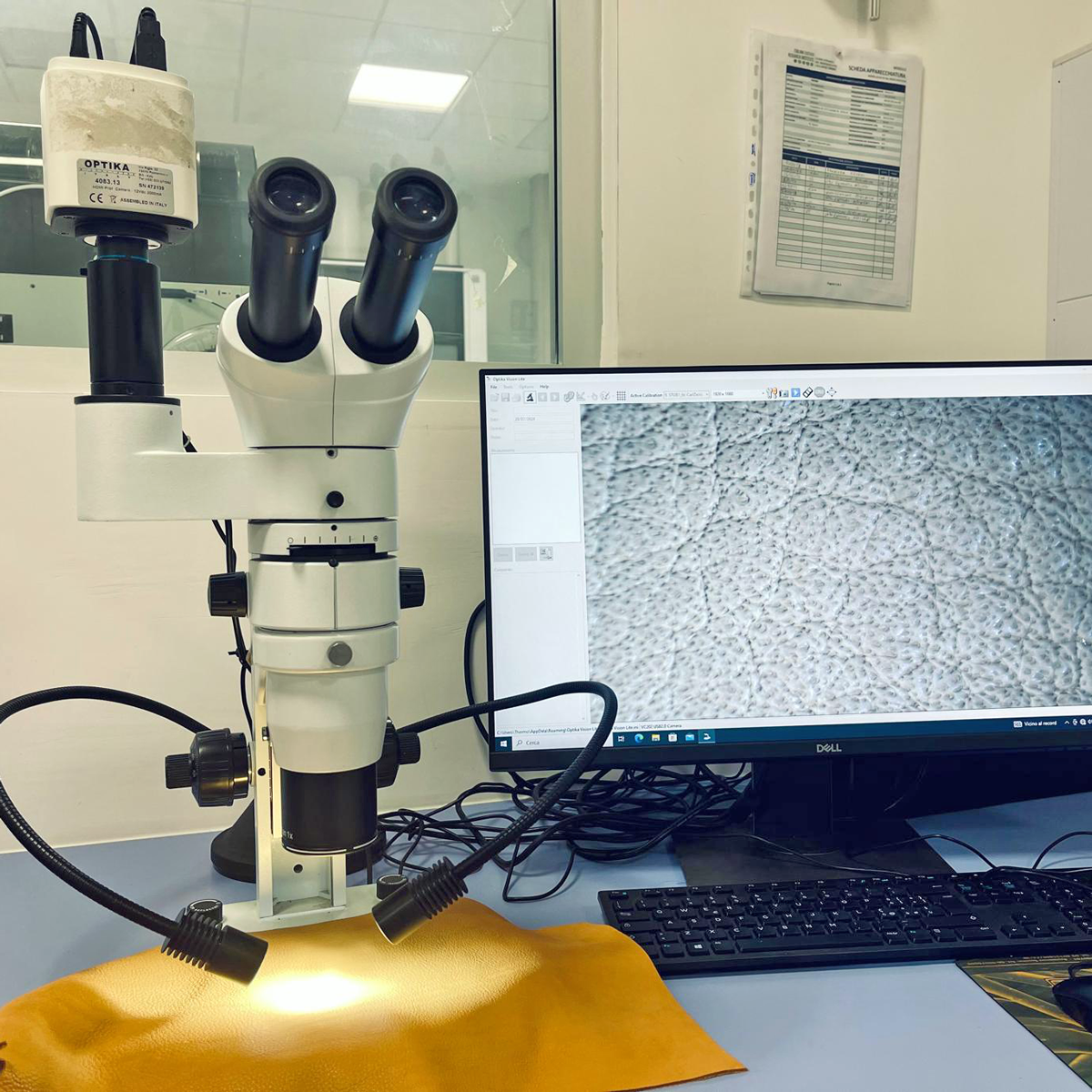 Attività di analisi condotte con metodi di Microscopia Ottica ed Elettronica (SEM) per l’identificazione delle specie animali e la caratterizzazione dei difetti; Spettroscopia FT-IR in ATR per la qualificazione della rifinizione e dei prodotti chimici conciari; microscopia RAMAN per progetti e innovazione.