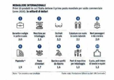 Primato mondiale del Made in Italy: tra le prime 10 categorie di prodotto su 228,…