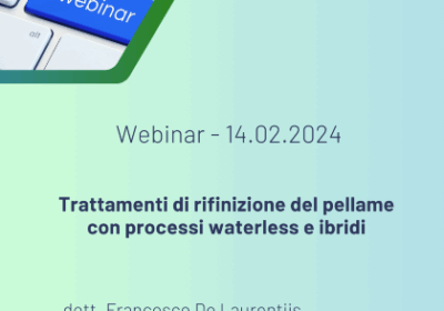 Webinar 14.02.2024 – “Trattamenti di rifinizione del pellame con processi waterless e ibridi”