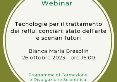 Webinar 26.10. 2023 – “Tecnologie per il trattamento dei reflui conciari: stato dell’arte e scenari futuri”- Report