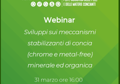 Webinar 31.03.2022 – “Sviluppi sui meccanismi stabilizzanti di concia (chrome e metal-free) minerale ed organica”