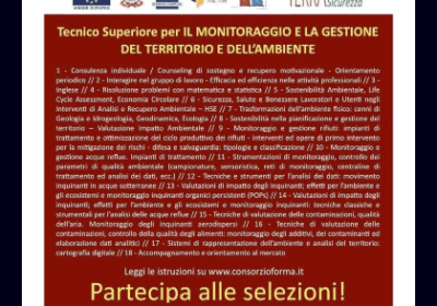 Aperto il bando per il Corso IFTS di “Tecnico Superiore del monitoraggio e gestione del territorio e dell’ambiente –sostenibilità e sicurezza”